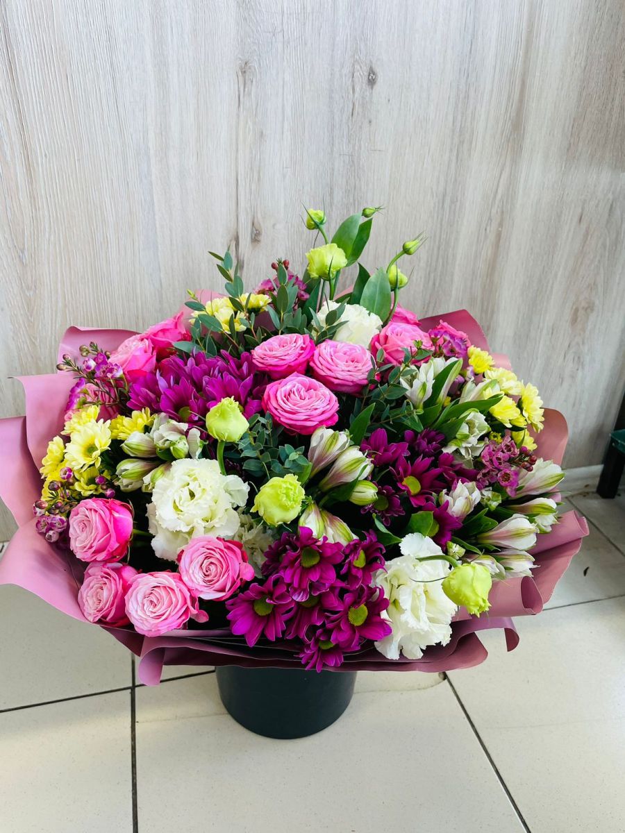 Букет «Роза микс с альстромерией и кустовой хризантемой»
