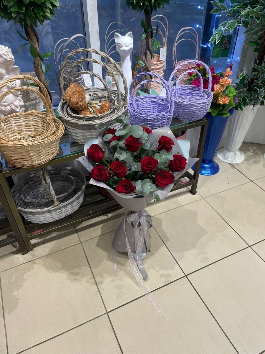 Букет «Роза микс с кустовой хризантемой, седумом и гвоздикой»